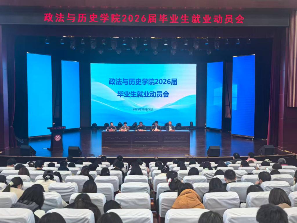 10月22日下午,政法与历史学院在高新校区博文楼报告厅召开2026届毕业生就业动员会。学院党政领导、系主任、毕业班研究生导师、班主任、辅导员及2026届全体毕业生参加会议。会议由学院党委书记李建钢主持。
