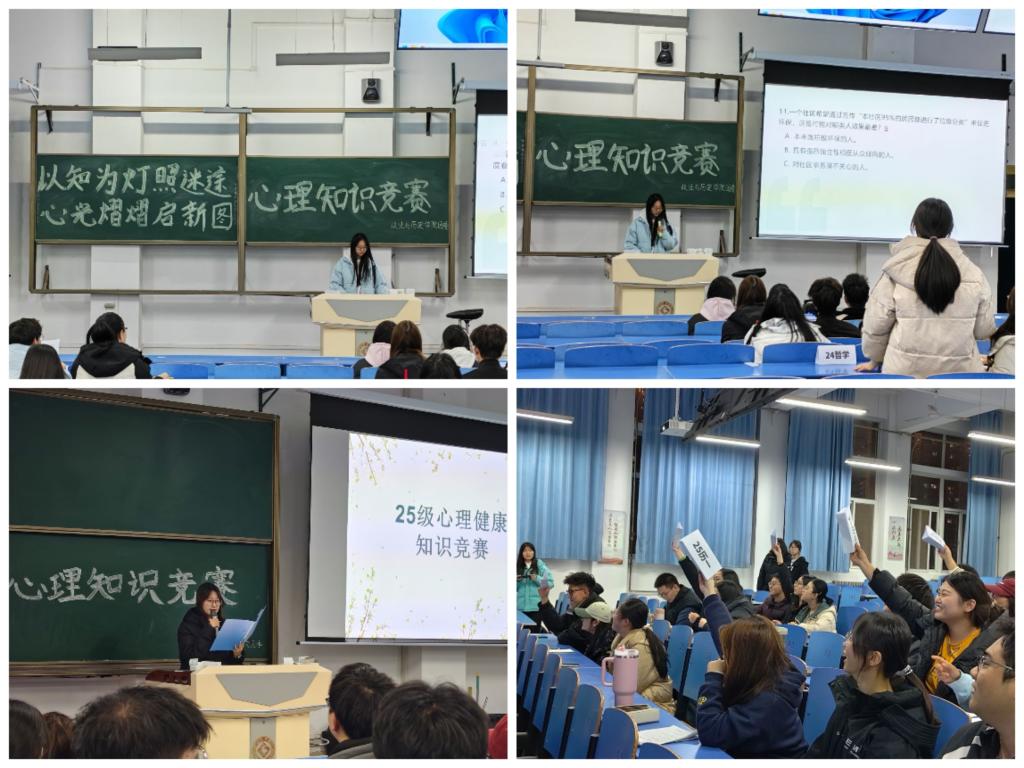 为普及心理健康知识,提升学生心理认知与调适能力,营造健康和谐的校园氛围,11月26至27日,我院于立心楼520教室举办了“以知为灯照迷途 心光熠熠启新图”心理健康知识竞赛。2024级、2025级各班代表学生参加了比赛。