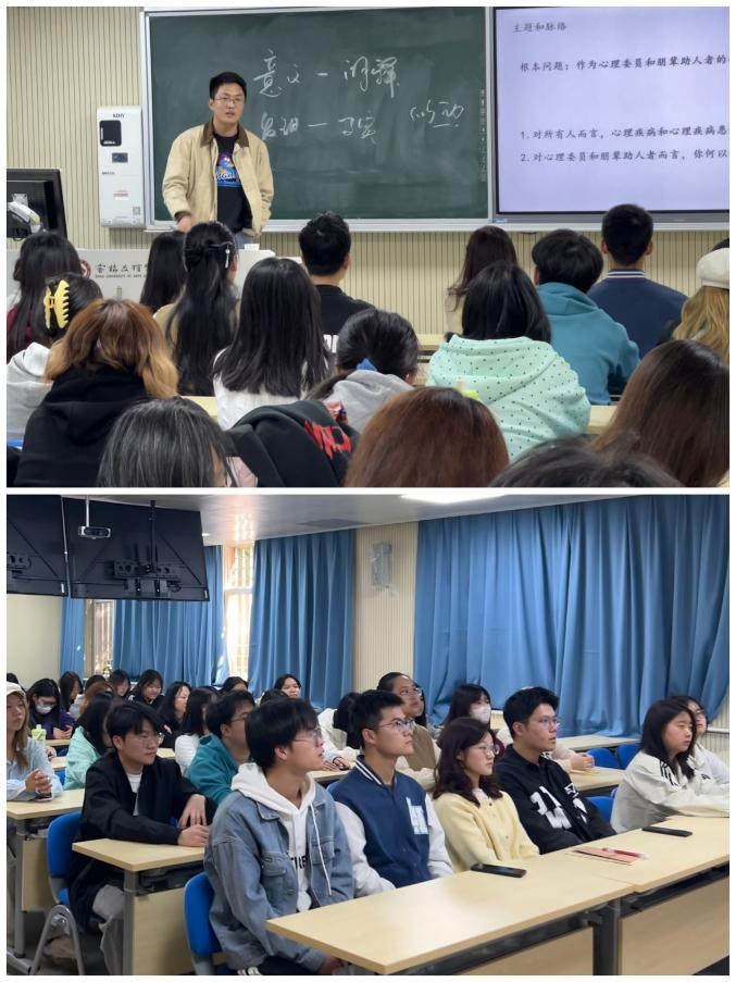 培训环节,石莹波老师以《从意义角度理解心理疾病与朋辈助人》为主题展开讲解,紧密结合学生朋辈帮扶工作实际,从意义视角深入探讨心理疾病的本质及其在不同语境中的呈现形式,细致分析了校园场景下常见的学生心理困扰及相关社会现象。同时,针对“一站式”社区服务中可能遇到的心理帮扶场景,清晰阐述了朋辈助人者的角色定位、工作要求及实操技巧,重点讲解了如何在日常相处中发现学生心理异常、如何科学开展倾听陪伴、如何规范做好心理危机上报等关键内容,为心理委员和舍长提供了专业的理论指导与可操作的实践思路。整场培训内容翔实、贴合工作实际,让参会学生对朋辈心理帮扶工作有了更系统、更深入的认识。